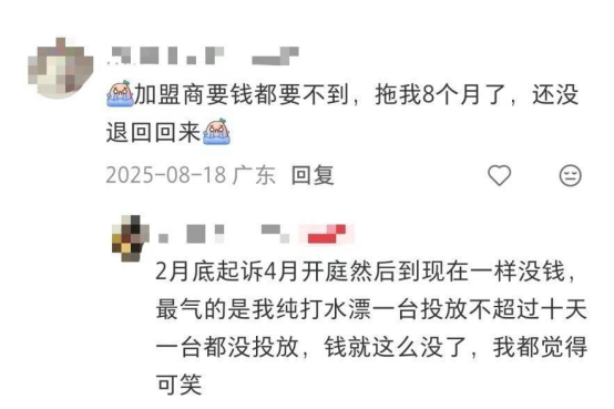 东莞的加盟商文小姐说,她2024年10月加盟,第一个月分成还有3000元,后面越来越低,到2025年5月就彻底没回款了。